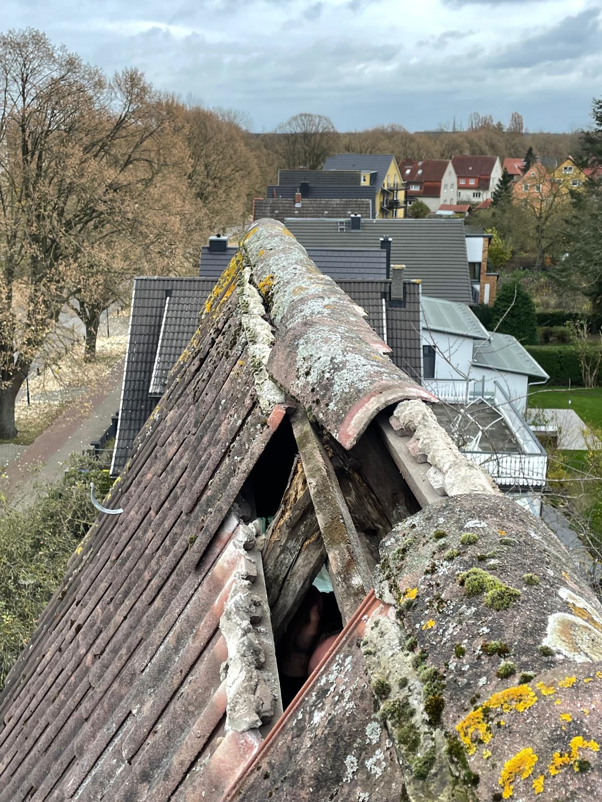 Lose Ziegel, verrutschte Bauteile oder beschädigte Anschlüsse nach Sturm: Wir sichern das Dach kurzfristig und reparieren die betroffenen Bereiche fachgerecht.