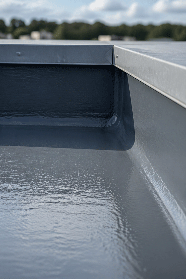 KEMPEROL eignet sich besonders für Flachdächer, Anschlüsse, Attiken, Durchdringungen, Lichtkuppeln und andere detailreiche Bereiche. Überall dort, wo präzise Abdichtung gefragt ist und klassische Systeme an Grenzen stoßen, spielt Flüssigabdichtung ihre Stärken aus.